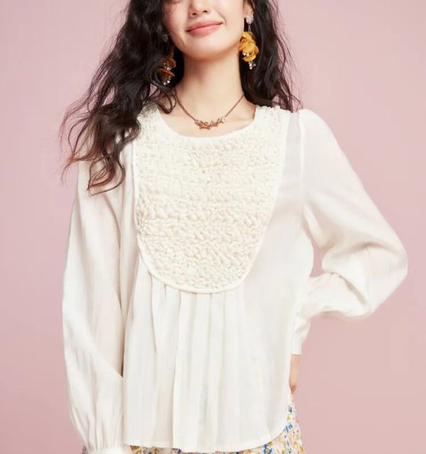 White Lace-up Long Sleeve Blouse