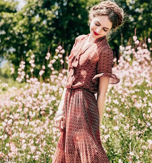 Vintage Style Puff Sleeves Midi Dress