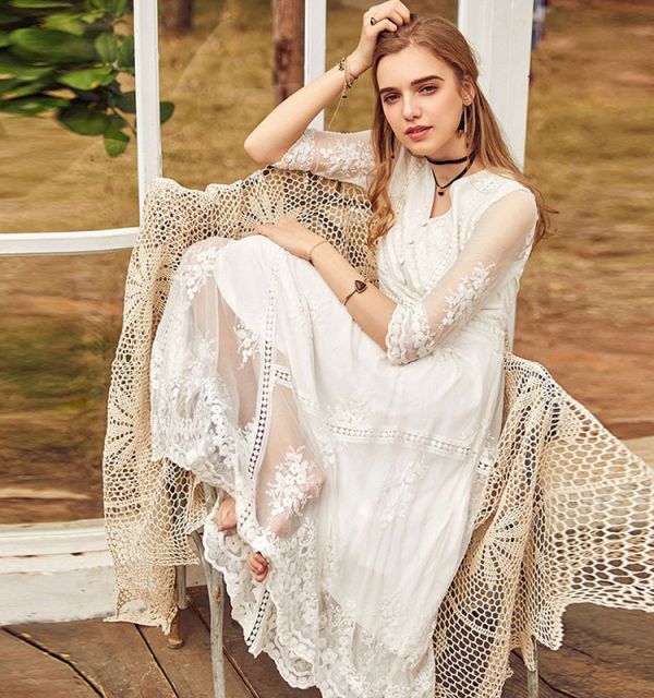 Premium Lace Self-Embroidered Floral Maxi Dress