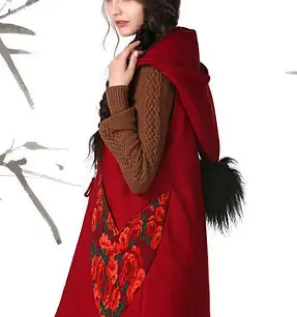 Premium Embroidered Faux Fur Trim Hood Parka Jacket