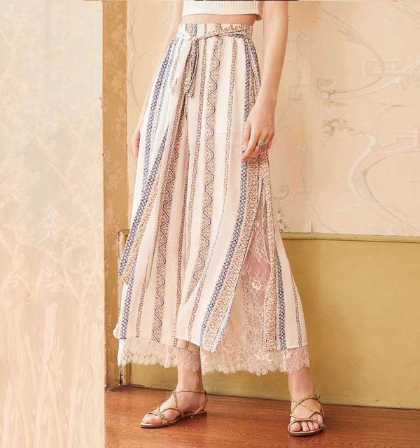 Lace Hem High-Waist Side Split Chiffon Palazzo