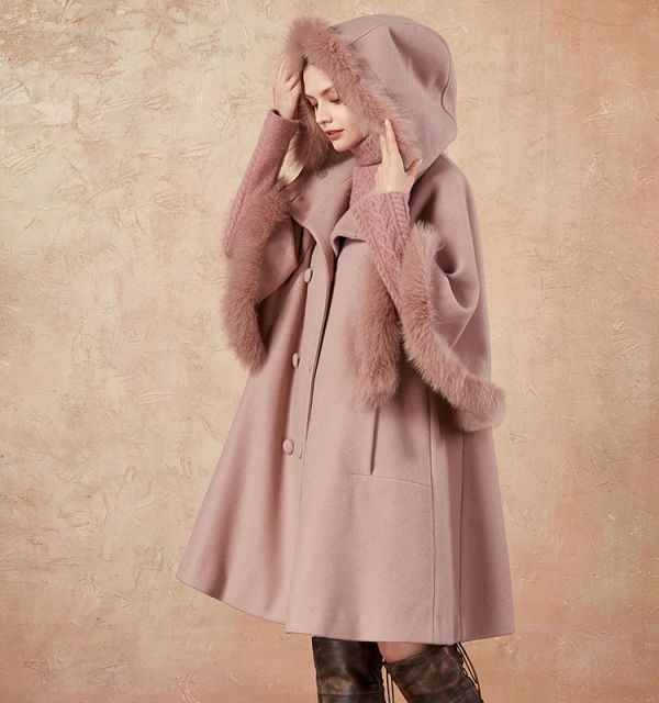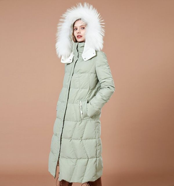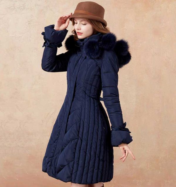 Faux Fur Pompom Trim Hooded A-Line Puffer Jacket