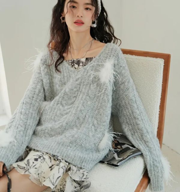 V-Neck Feather Wool Sweater