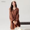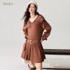 Dive into the innovative design of the fake two-piece. The lapel hoodie effortlessly fuses with the pleated dress, offering a unique style statement that's hard to miss. It's like having the best of both worlds—a hoodie's comfort paired with the elegance of a dress.