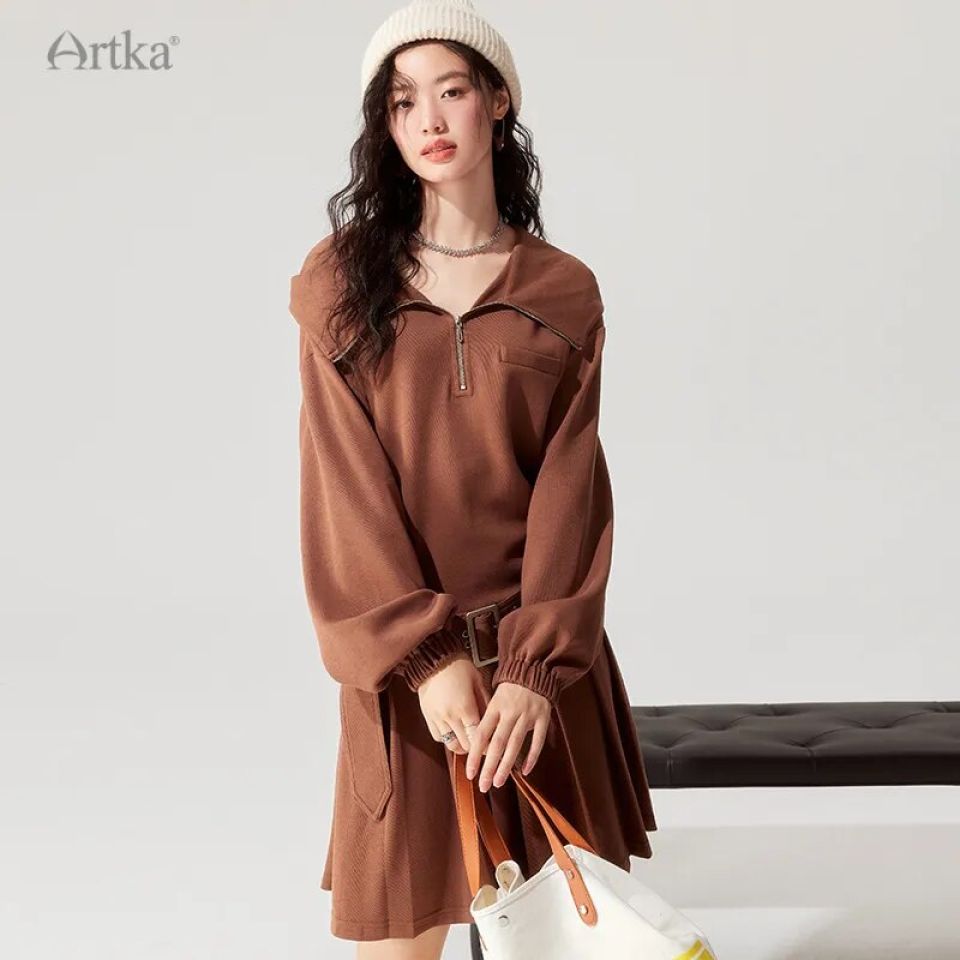 Stepping into a room, all eyes on you, the Artka Women Dress promises to be more than just a garment—it's a statement, a reflection of elegance with a casual twist. Crafted with precision and passion, this dress caters to the young at heart, echoing vibes of autumn and winter, sophistication, and spontaneity.
