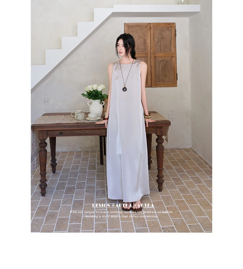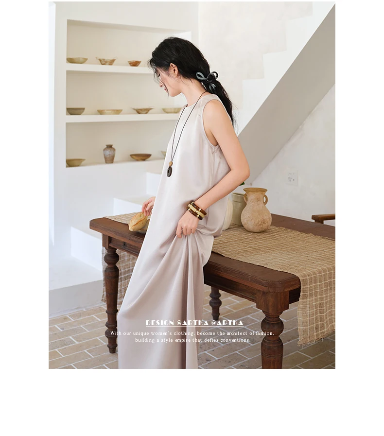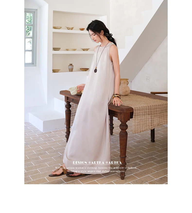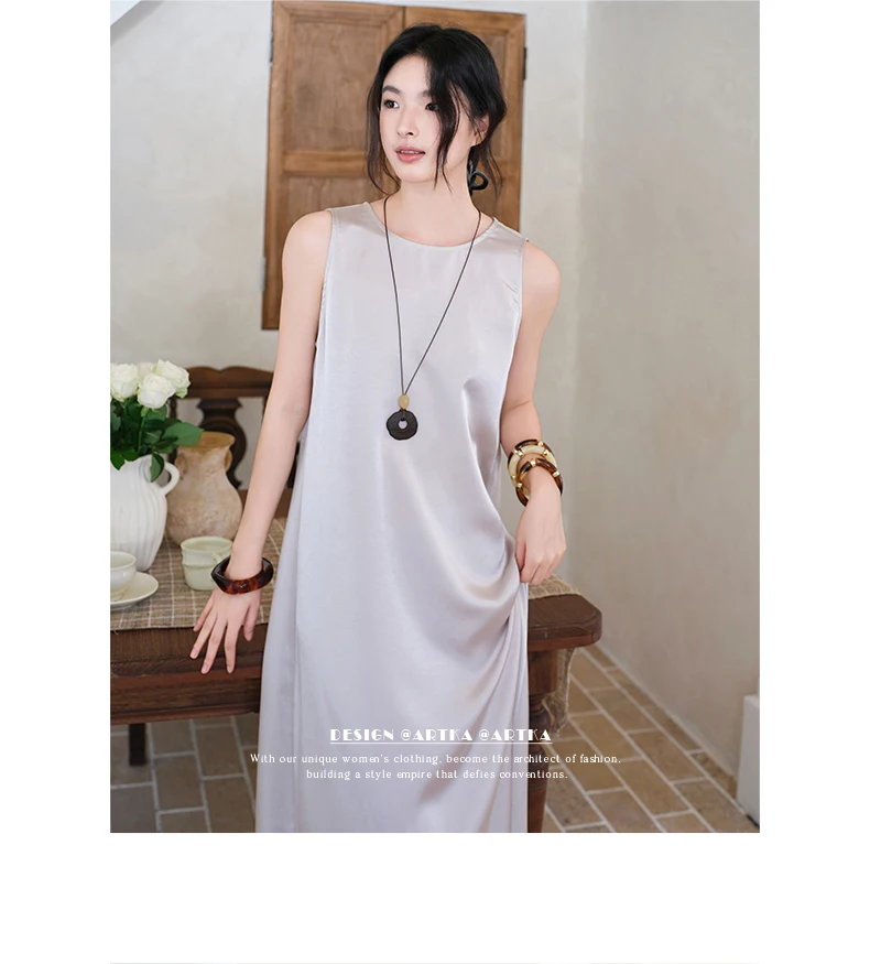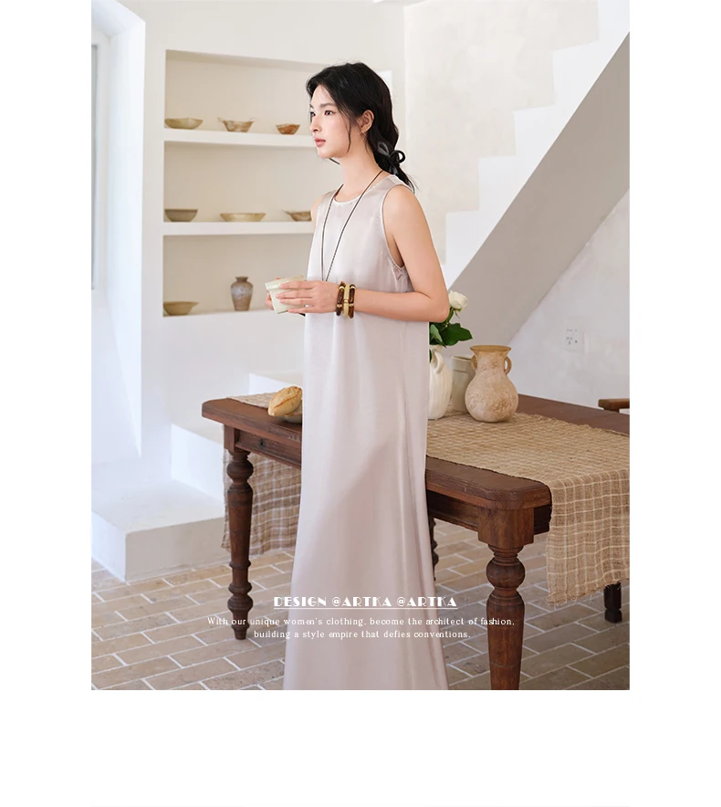 The straight-cut silhouette of the sleeveless dress elongates the frame, creating an elegant vertical line that enhances natural poise. Its ankle-length hemline offers both modesty and sophistication, while the pullover’s slightly relaxed fit brings balance to the ensemble. Designed as a one-size option, this set caters to women who appreciate relaxed elegance with a structured finish. It embodies the Artka philosophy of combining timeless fashion with modern wearability.