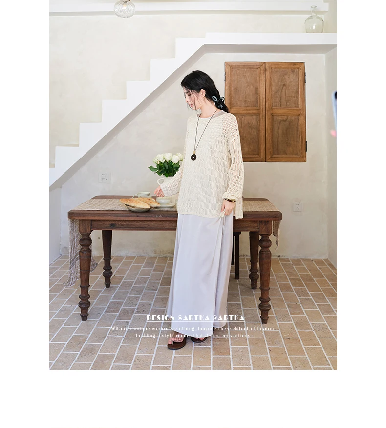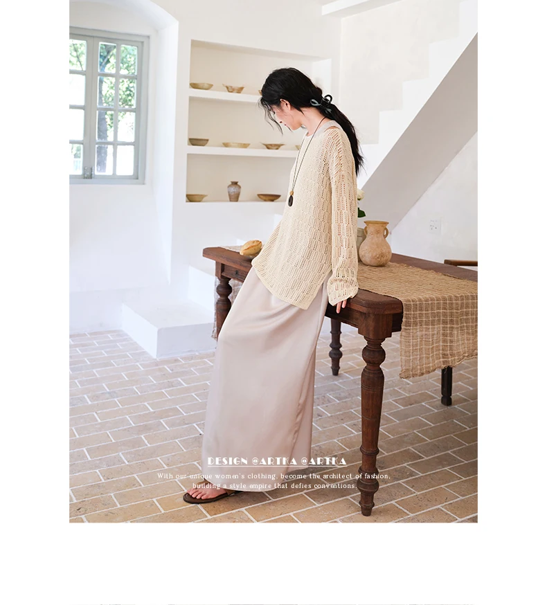 Crafted with exquisite attention to detail, this dress set is tailored to highlight both beauty and comfort. The hollowed-out pullover top adds an element of refinement, with delicate knit patterns that subtly reveal texture without compromising sophistication. Layered over the ankle-length straight dress, it creates a harmonious silhouette that flatters women of all ages. The pullover’s long sleeves and elegant drape balance the sleeveless underdress, ensuring the look feels intentional, chic, and ready for any occasion.