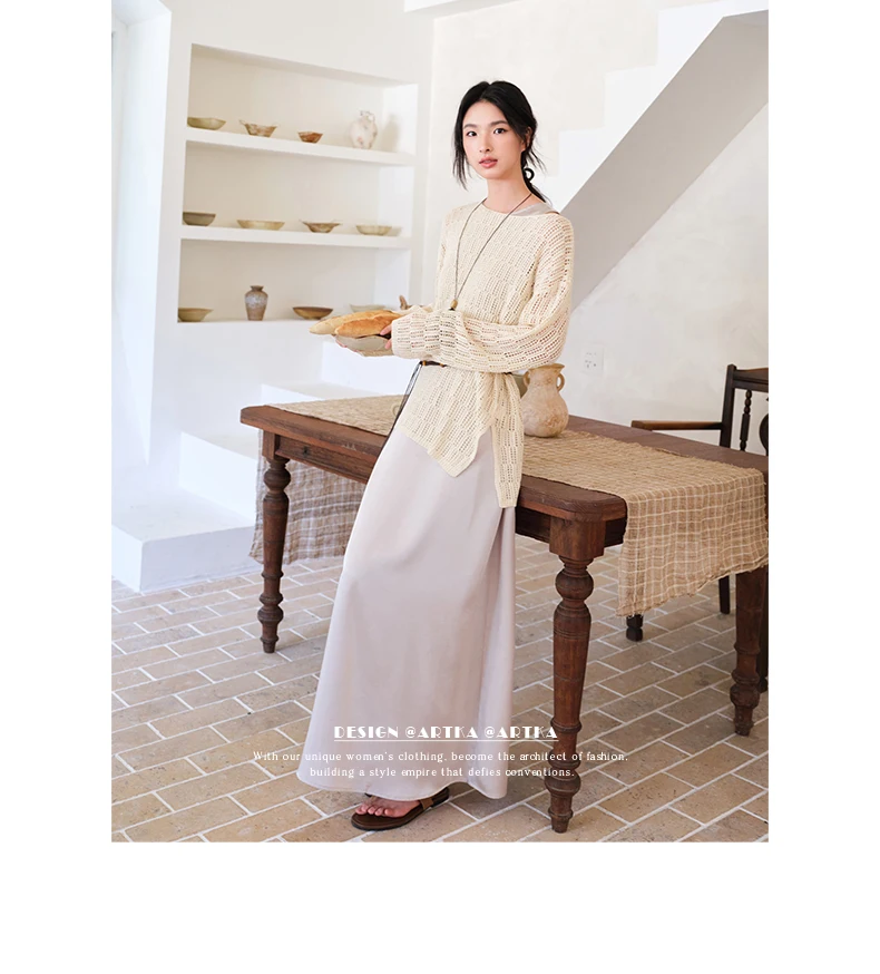 Step into the enchanting world of sophisticated autumn fashion with the ARTKA 2025 Autumn New Women Dress Set. Designed for women who embrace effortless charm and graceful presence, this two-piece set combines a hollowed-out knitted pullover top with a sleeveless long straight dress, creating a layered look that radiates elegance. Perfect for crisp autumn days, this ensemble offers a seamless balance of warmth, style, and versatility, making it an essential addition to your wardrobe this season.