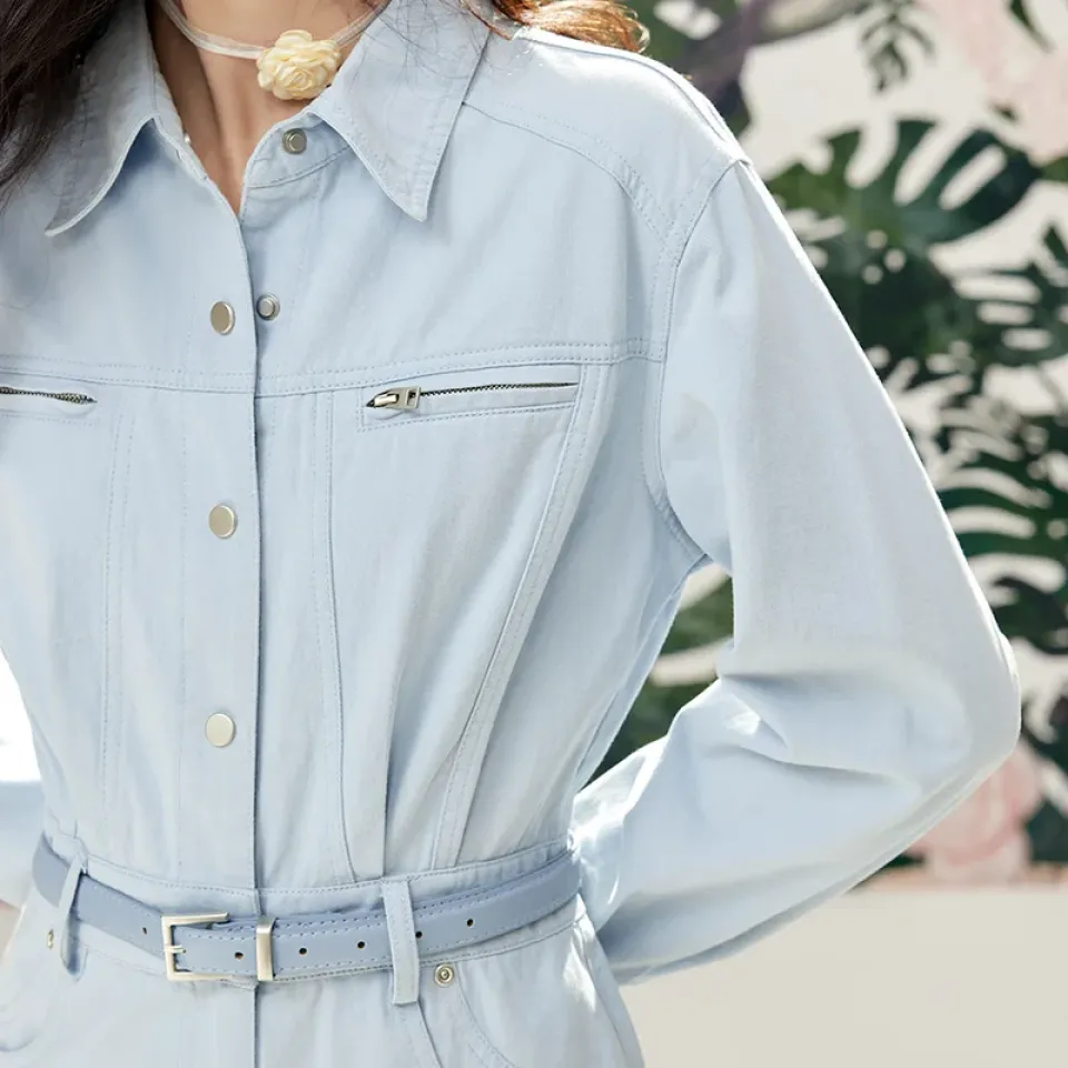 Inspired by classic safari style, this dress features a straight silhouette and solid pattern that embodies timeless elegance. The single-breasted closure adds a modern touch while maintaining the dress’s easy-wear appeal. This blend of safari influence and contemporary design makes it a standout piece in any wardrobe, perfect for brunches, weekend getaways, or casual office days.