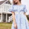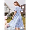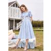 Boat Neck Ruffle Arms Plaid Midi Dress