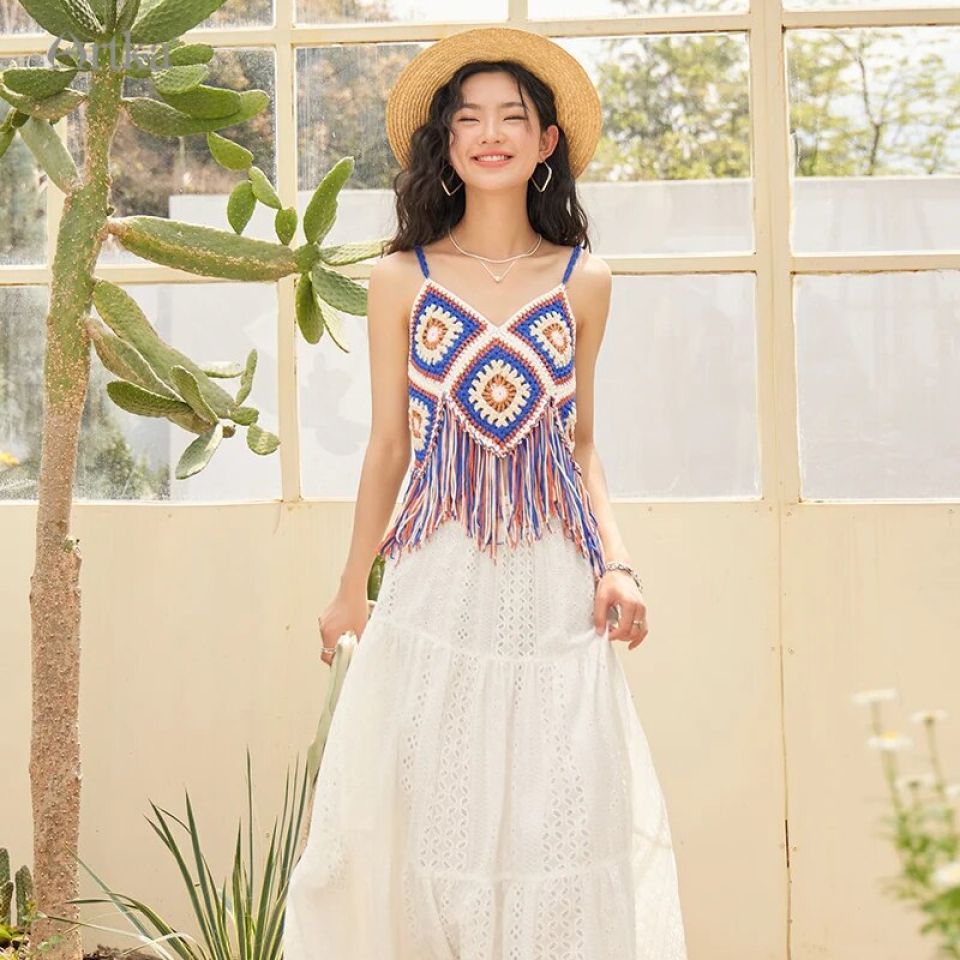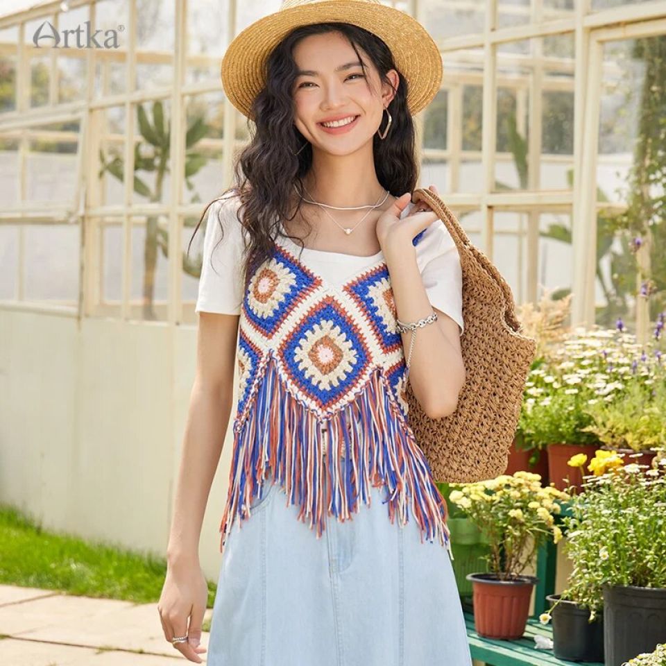 Elevate your summer wardrobe with the ARTKA New Women's Tank Top. This vintage-inspired, bohemian indie folk knitted camisole is a statement piece that will transport you to a world of carefree elegance. Let's delve into the details that make this tank top a must-have addition to your collection.