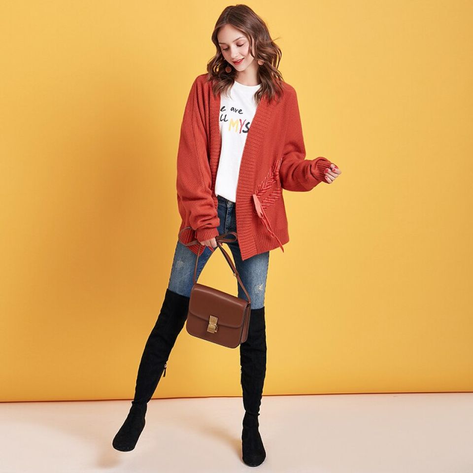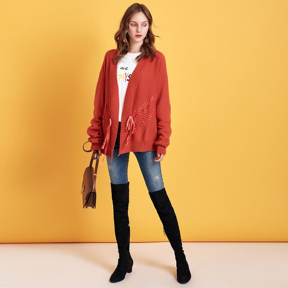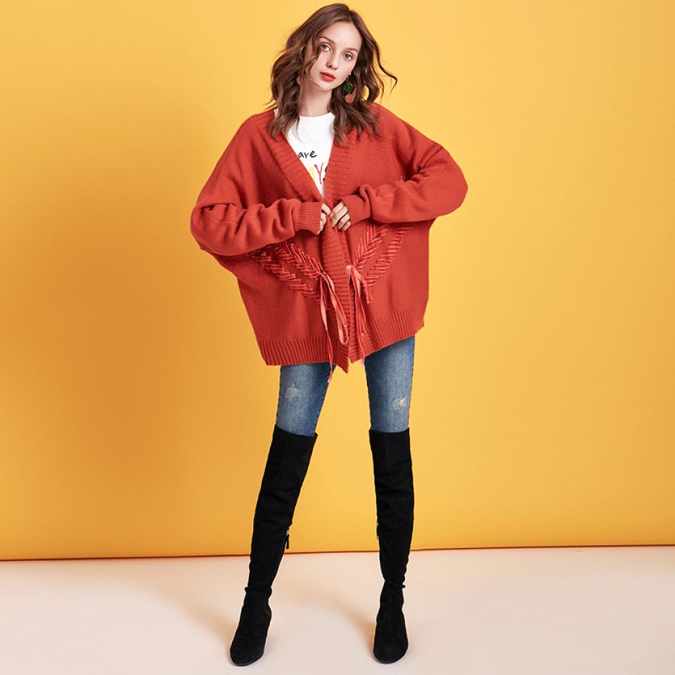 Be the first to review “Cable Knit Ribbon Tie Up Cardigan (Orange One Size)” Cancel reply