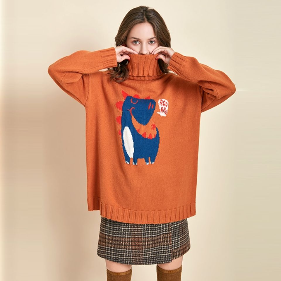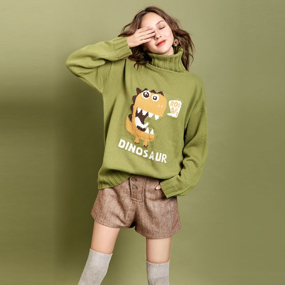 Whether you’re heading to a casual outing or a relaxed day at home, the loose fit and turtleneck design provide a stylish and comfortable fit. Pair it with jeans or a skirt for a chic look.Why Choose the Cartoon Embroidery Loose Fit Turtleneck?