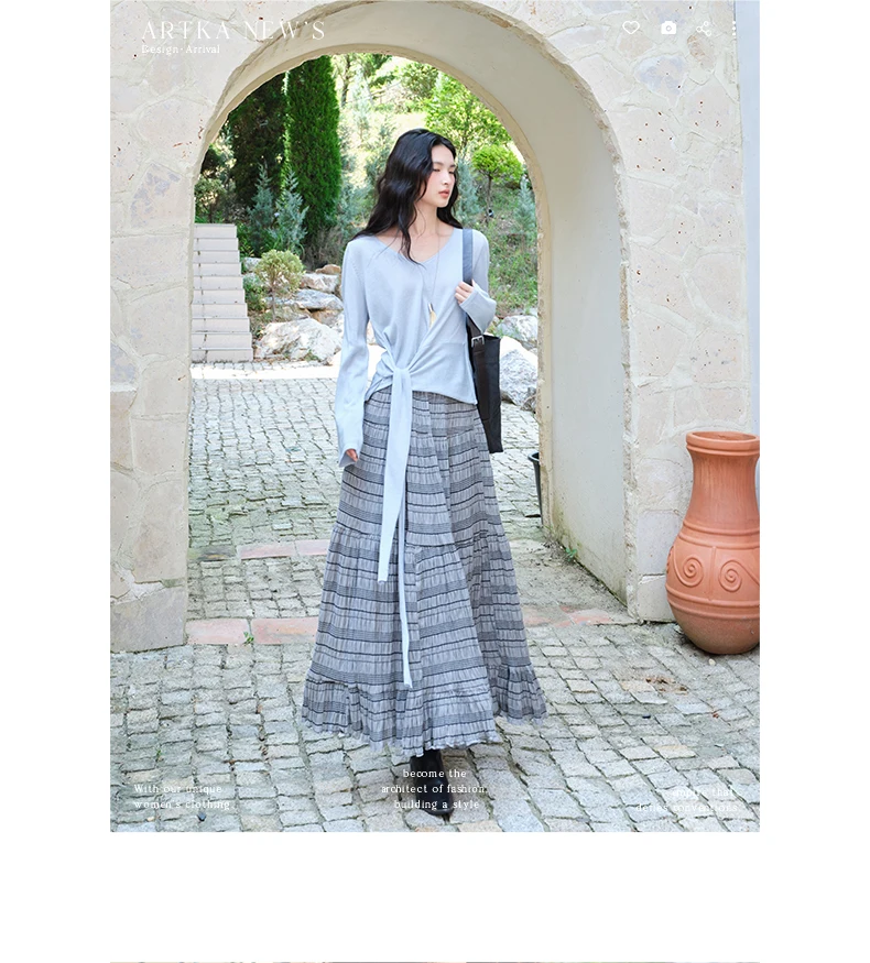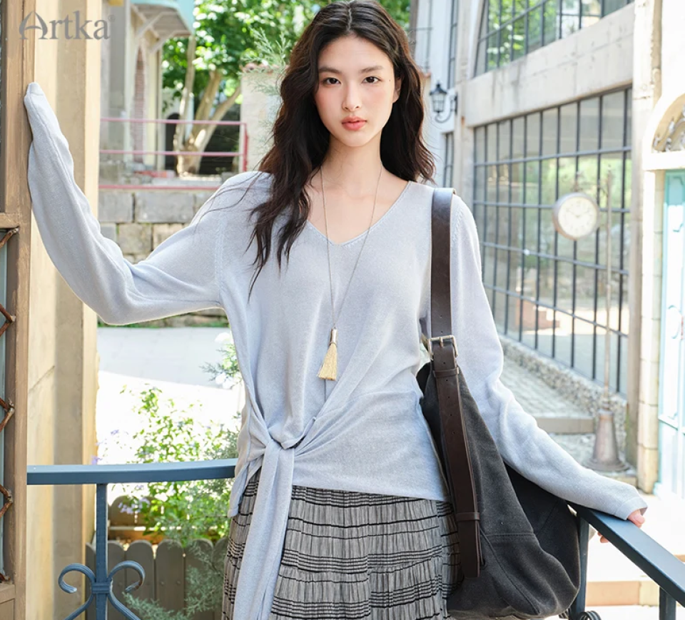The Artka 2025 Autumn Women’s Knitwear Pullover (ZB52051Q) is more than just a seasonal staple—it’s an expression of refined casual style blended with irresistible comfort. Crafted with a thoughtful mix of acrylic, linen, and lyocell, this knitwear offers the perfect harmony between lightweight breathability and cozy warmth, making it your go-to layering piece for crisp autumn days. Designed for the modern woman, this pullover’s loose fit, V-neckline, and adjustable waist decoration ensure a look that is relaxed yet undeniably chic.