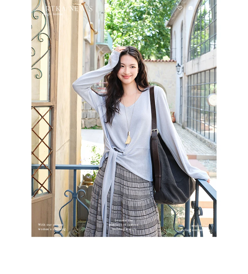 Unlike ordinary pullovers, the Artka Knitwear features subtle yet impactful details that elevate it to wardrobe essential status. The V-neck collar frames the neckline beautifully, offering both layering potential and a hint of allure. The adjustable waist decoration allows you to add shape when desired, balancing between structured refinement and relaxed flow. Its slight stretch ensures comfortable wear while maintaining its elegant silhouette.