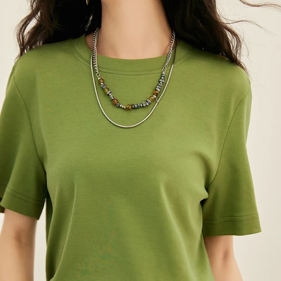 Simplicity is the ultimate form of sophistication. With a solid color pattern, this T-shirt is the epitome of class, allowing you to accessorize with ease and making it versatile for any occasion. Whether it's an impromptu brunch or a relaxed evening with friends, the solid hue of this T-shirt exudes a timeless elegance that never goes out of style.