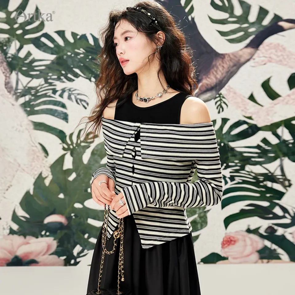 Step into spring with the ARTKA 2024 Spring Elegant Tank Dress Set, an exquisite two-piece outfit that blends sophistication and versatility. This set includes a long black dress and an off-shoulder striped knitwear piece, creating an effortlessly chic ensemble for various occasions. Perfect for women who want to showcase elegance with a hint of playful style, this dress set offers endless styling possibilities.