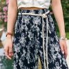 Chiffon Floral Printed Wide Leg Pants With Belt