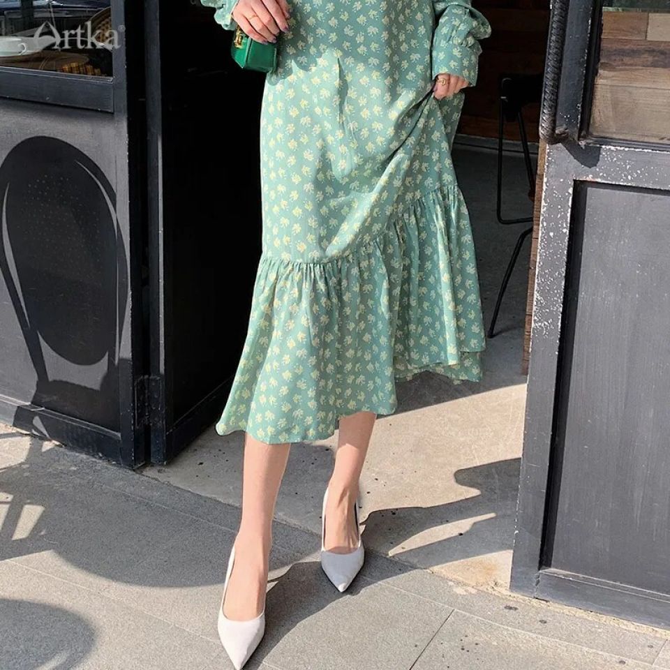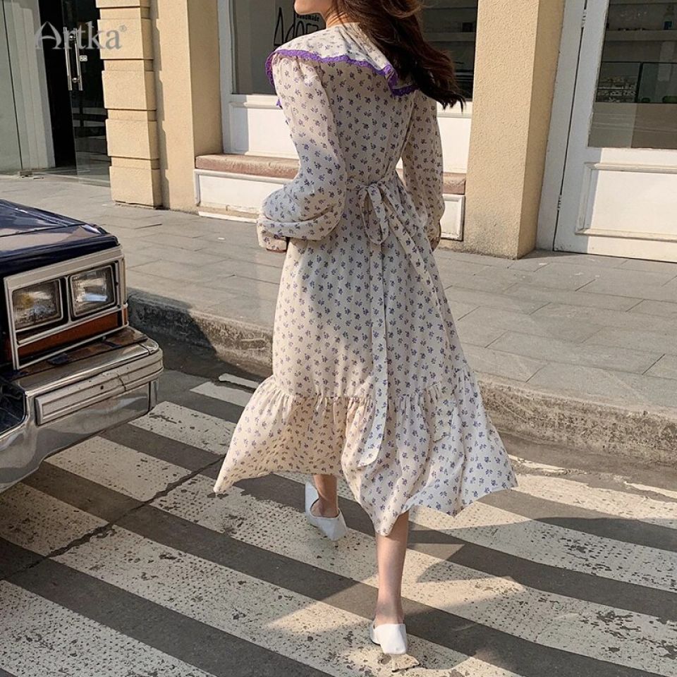 Introducing the ARTKA Collection, a culmination of timeless elegance, delicate lace, and the vibrant allure of floral prints. Made to epitomize sophistication, this chiffon long dress blends the tradition of classic design with a contemporary twist.