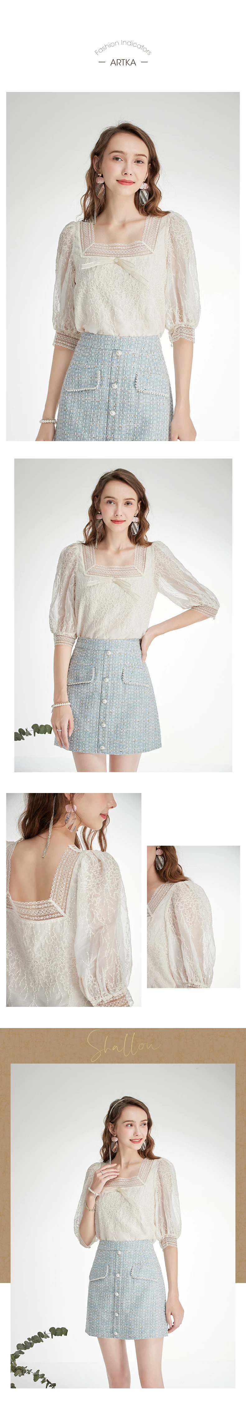 Upgrade your wardrobe with this elegant chiffon shirt designed for women. Featuring a delicate lace embroidery, square collar, and half puff sleeves, this midweight shirt is perfect for spring and autumn. Its regular fit and sophisticated style make it ideal for casual outings, office wear, or special occasions.