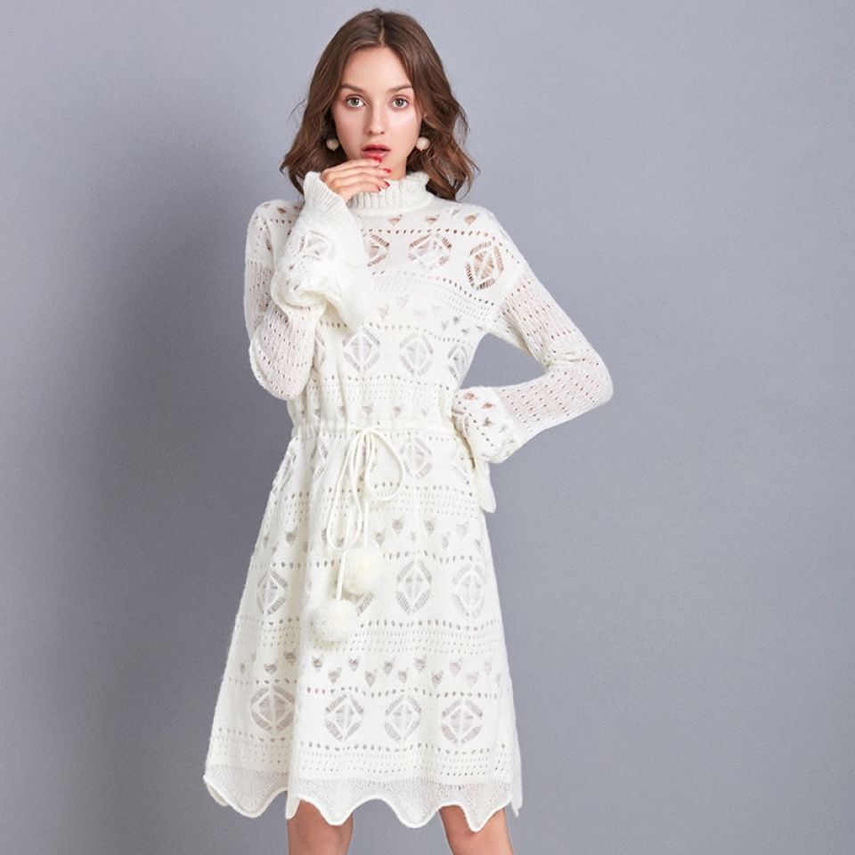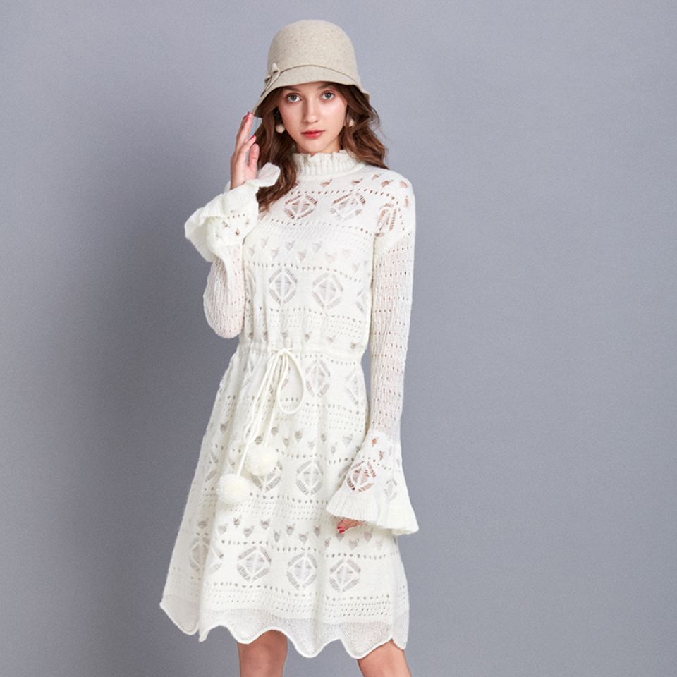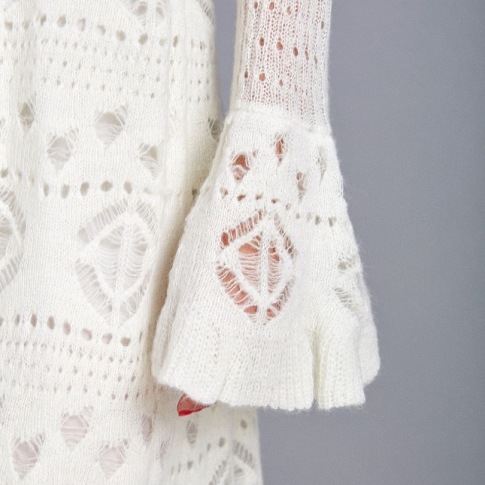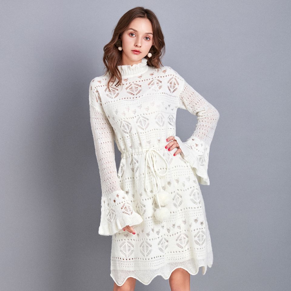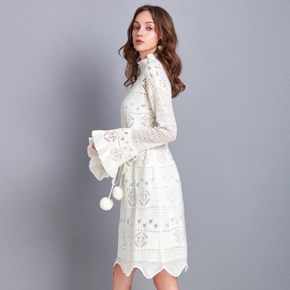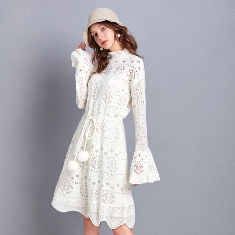 Elegant Hollow Out Knitted Flare Sleeve Sweater Dress
