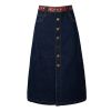 Features of the Embroidered Waist A-Line Denim Skirt