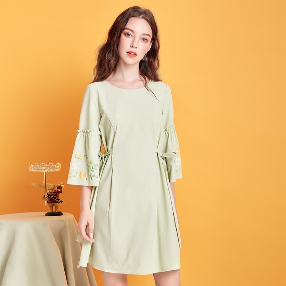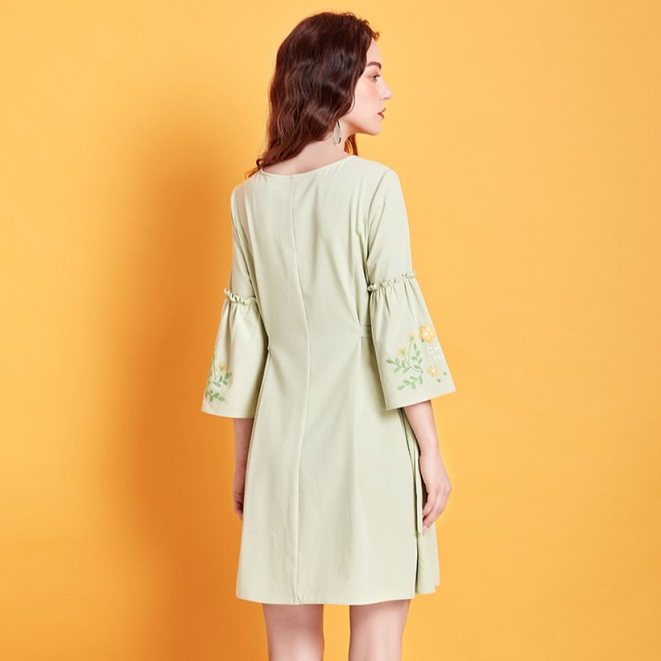 Be the first to review “Embroidery Flared Bell Sleeve Waist Tie Dress” Cancel reply