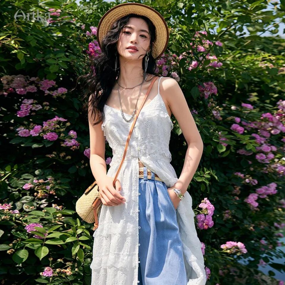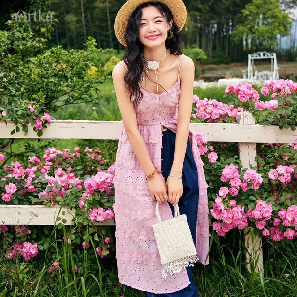 Submerge yourself in the world of fairytales with this enchanting summer dress by ARTKA. The meticulous lace detailing with playful ruffle trims will make you feel like you've stepped out of a storybook. Its delicate spaghetti straps perfectly complement the sleeveless design, ensuring you feel comfortable and confident.