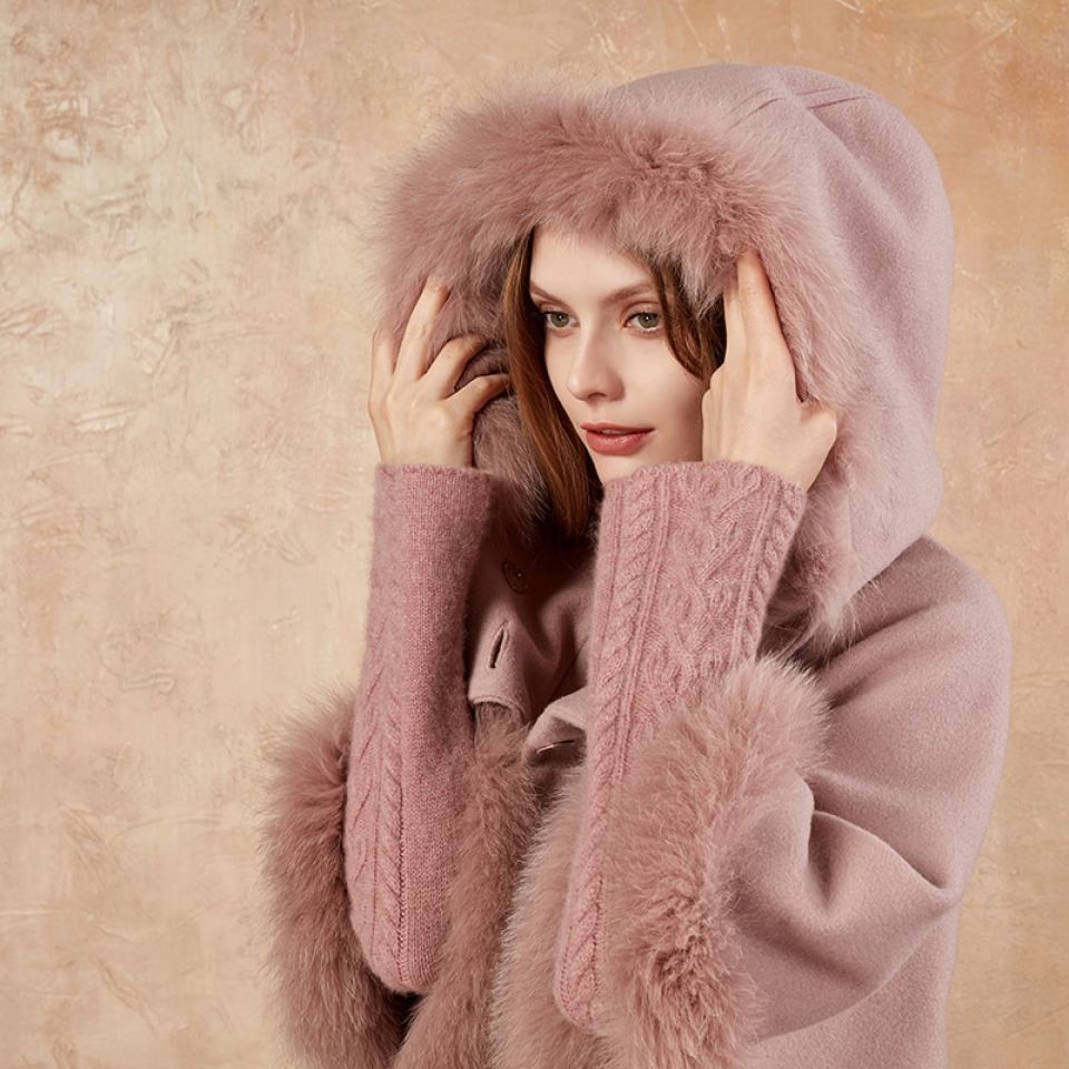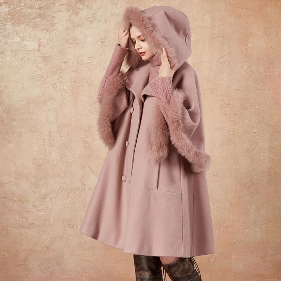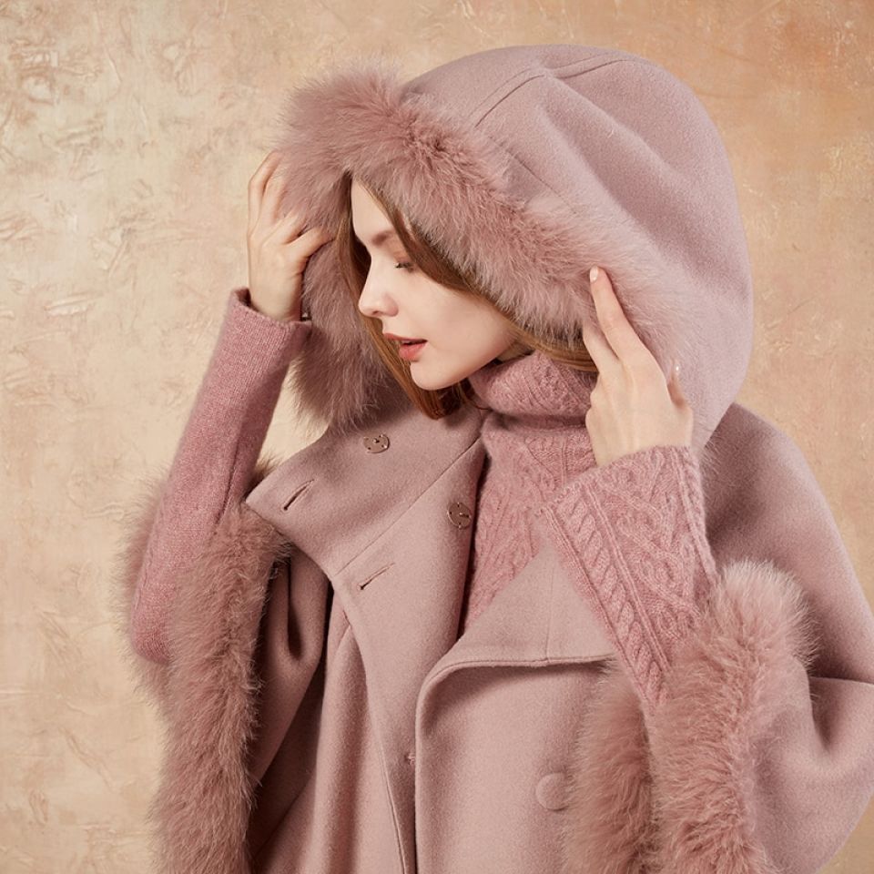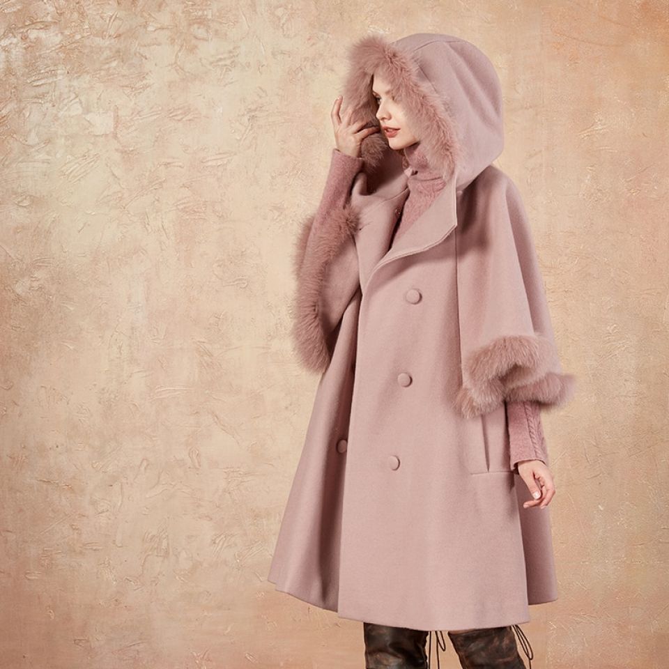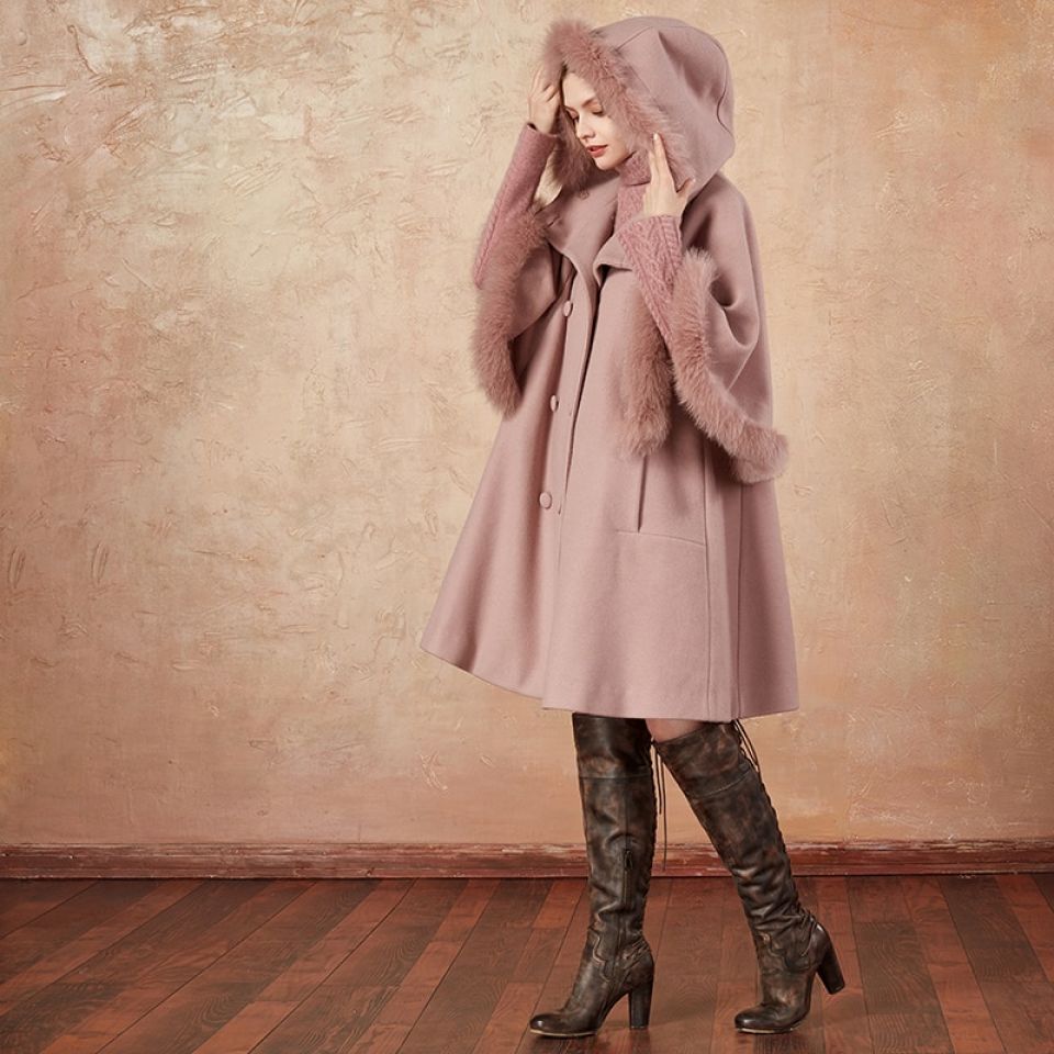 Faux Fur Lined Hooded Double Breasted Cloak