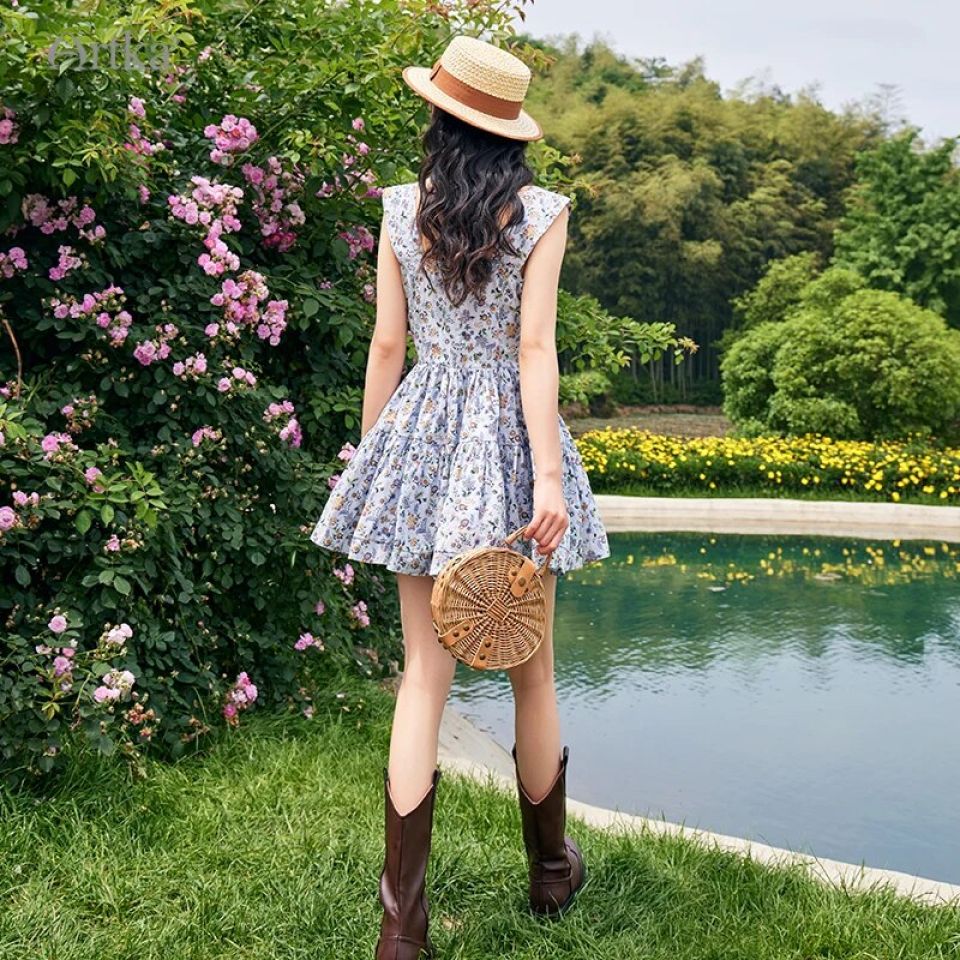 Dive deep into a summer fantasy with ARTKA's Elegant Floral Print Dress. Tailored to perfection with a subtle blend of vintage charm and contemporary style, this dress is a manifestation of sophisticated elegance for every modern woman.