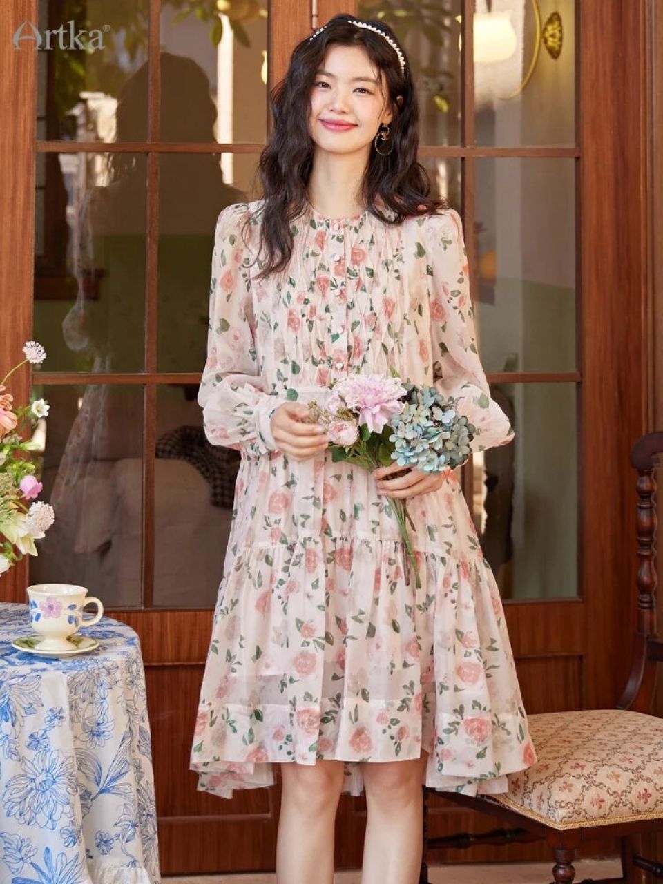 Spring blossoms within the ARTKA Floral Print Dress, bringing the allure of nature’s beauty directly into your wardrobe. The enchanting floral prints are carefully designed to encapsulate the essence of spring’s vitality and freshness, providing a garment that radiates a timeless, elegant charm, perfect for myriad occasions and gatherings.