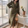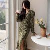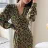 Floral Puff Sleeve Split Dress