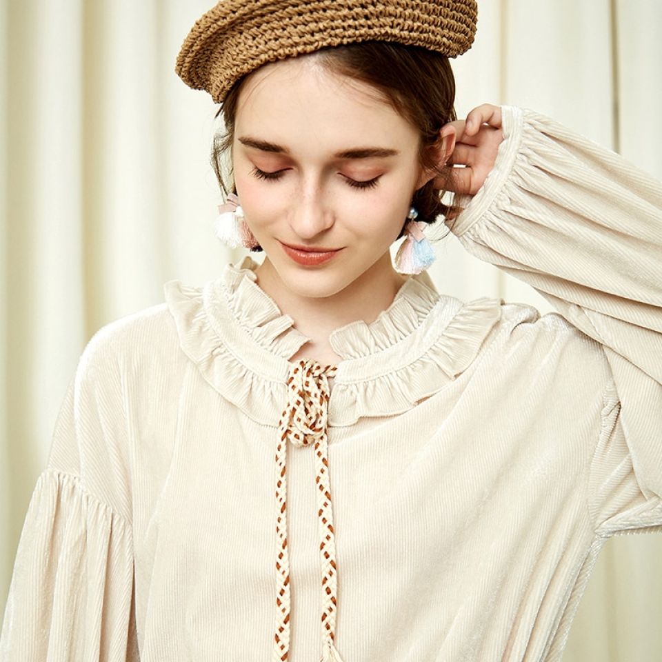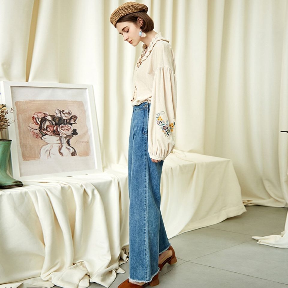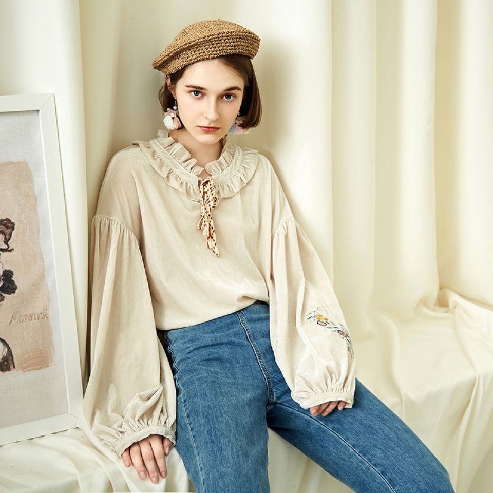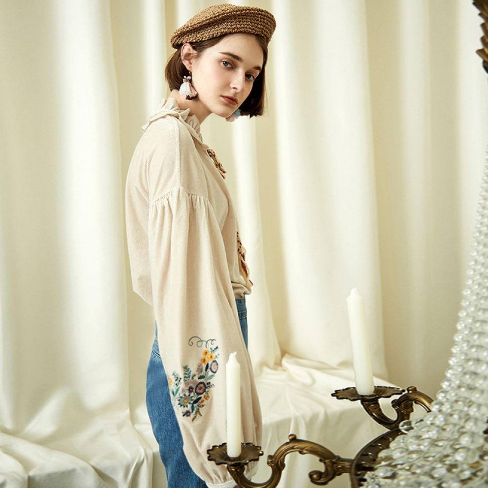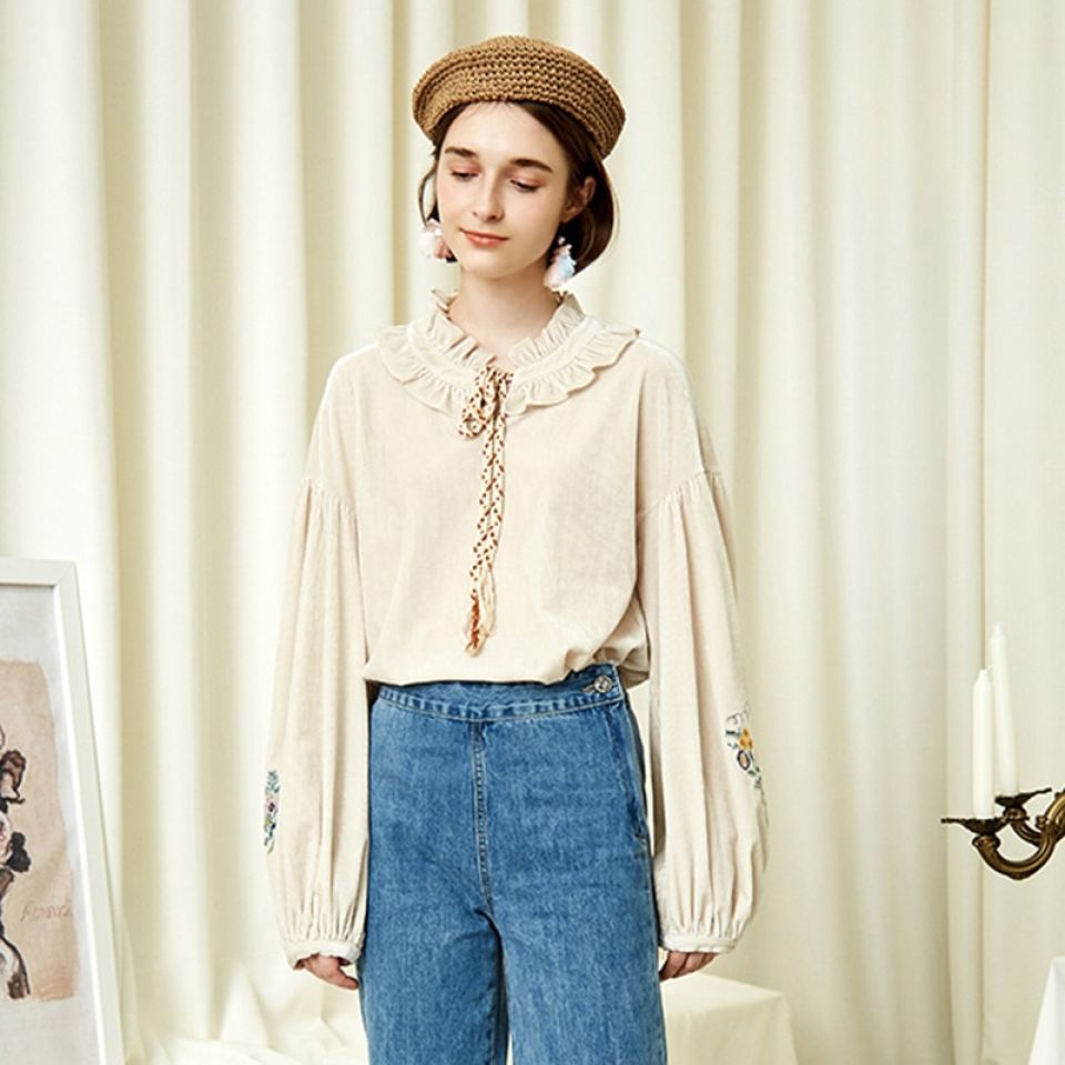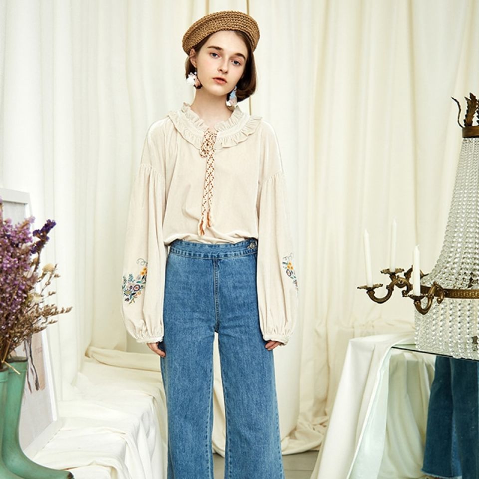 Be the first to review “Flower Embroidered Lantern Sleeve Tie Neck Blouse” Cancel reply