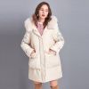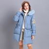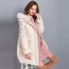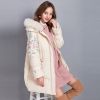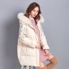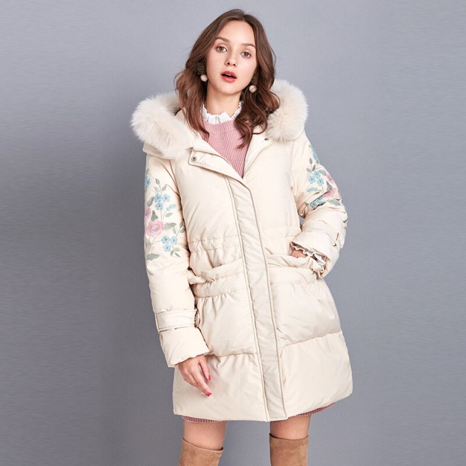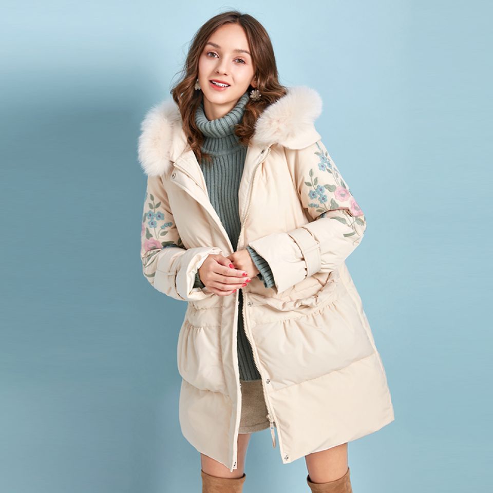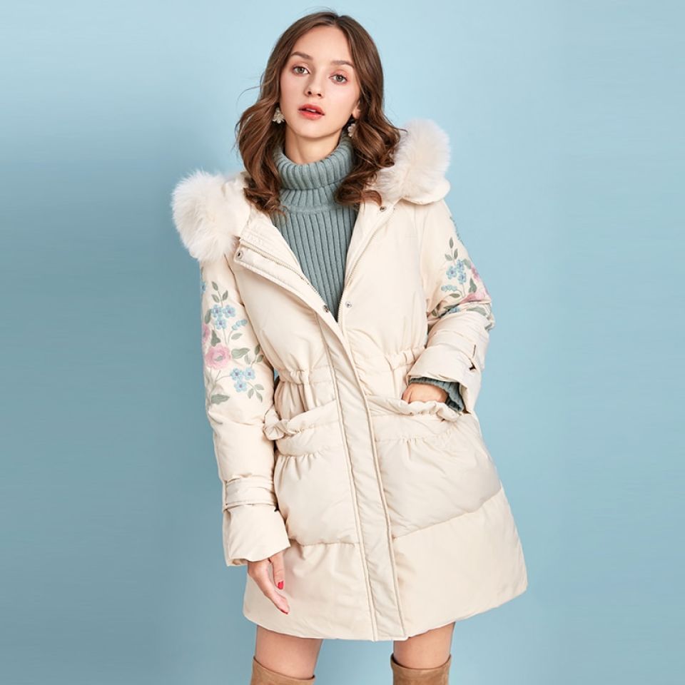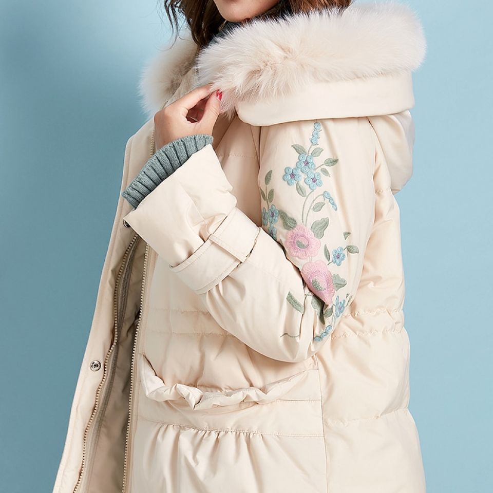Flower Embroidery Faux Fur Collar Puffer Jacket
