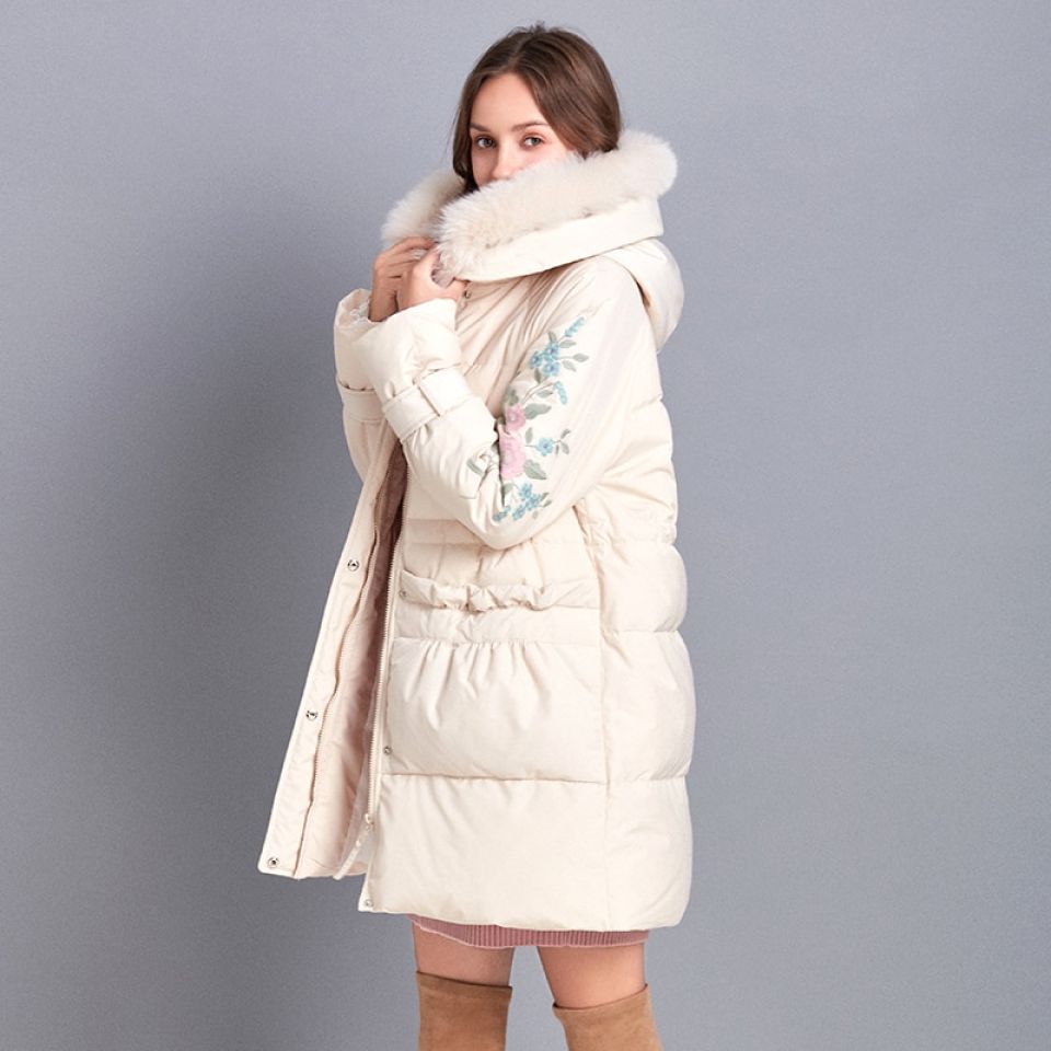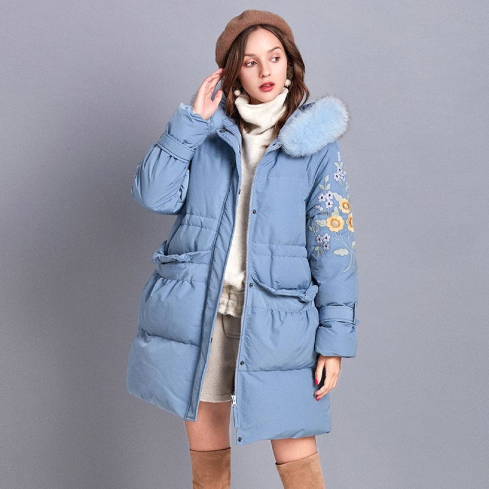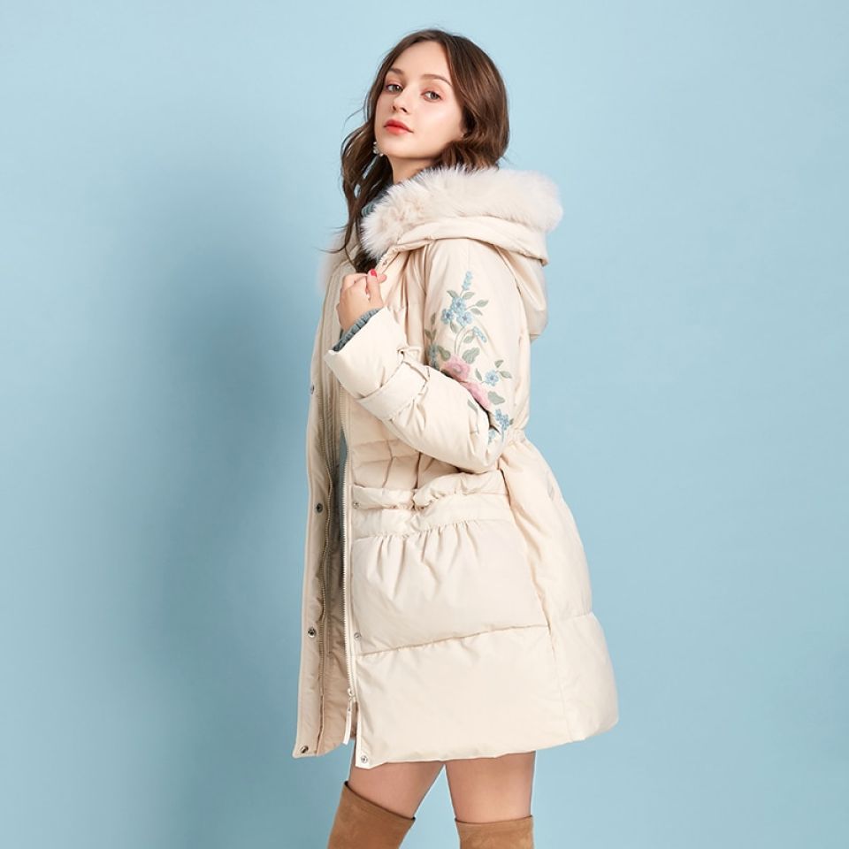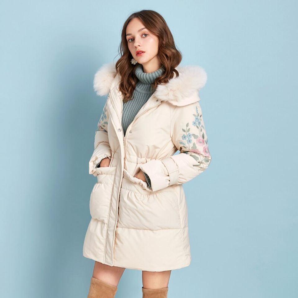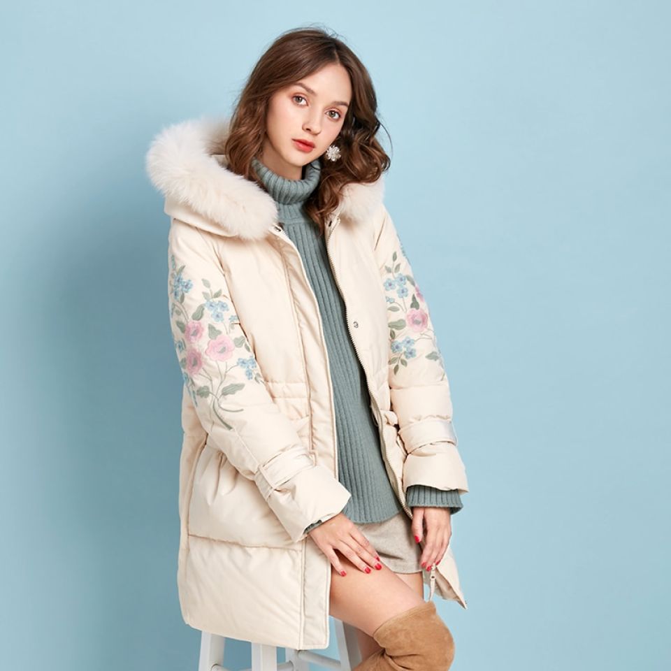 Embrace the beauty of winter with our Flower Embroidery Faux Fur Collar Puffer Jacket. The intricate floral embroidery adds a touch of elegance, making it a standout piece in your winter wardrobe.