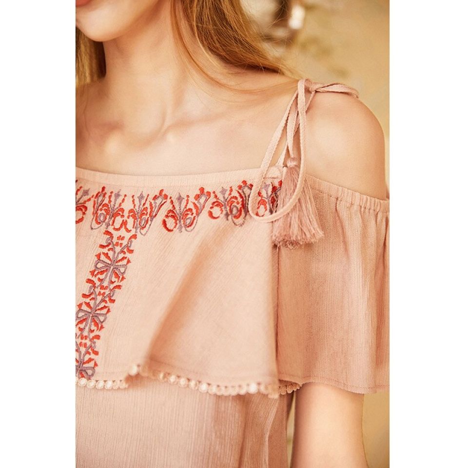 Be the first to review “Flower Embroidery Off-Shoulder Ruffle Neckline Blouse” Cancel reply