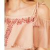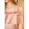 Flower Embroidery Off-Shoulder Ruffle Neckline Blouse