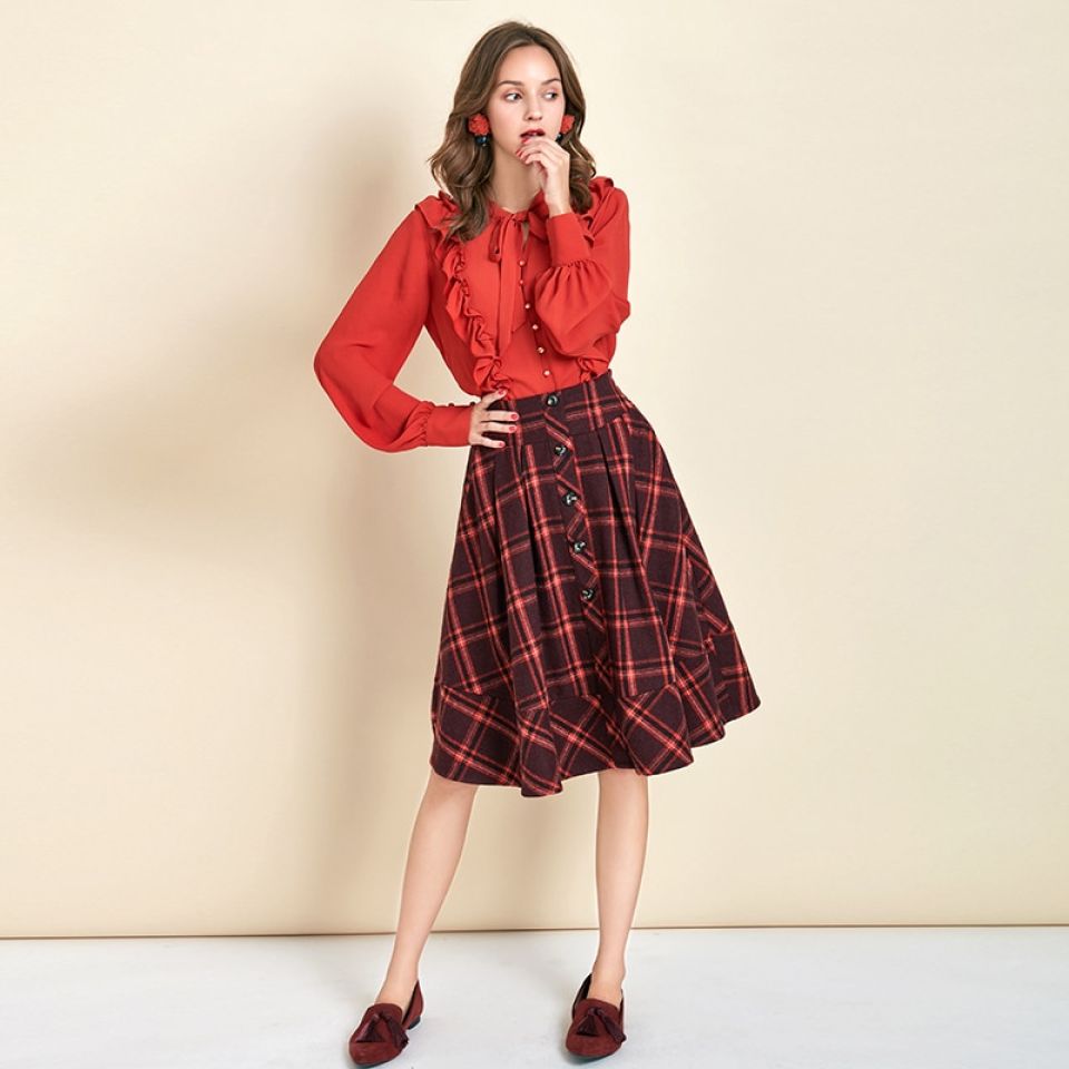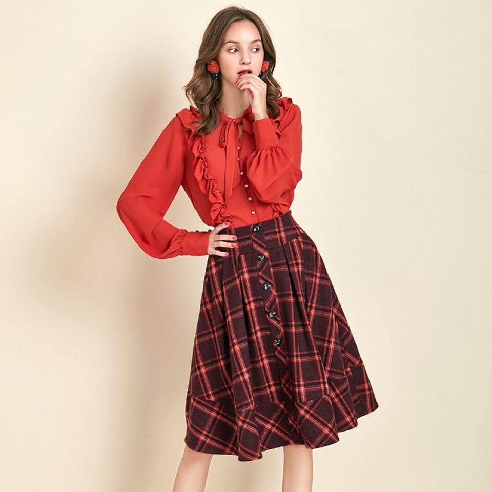 Be the first to review “Front Button Tweed Skirt With Ruffles” Cancel reply
