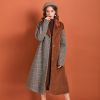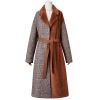 Half Plaid Half Suede Overcoat With Belt