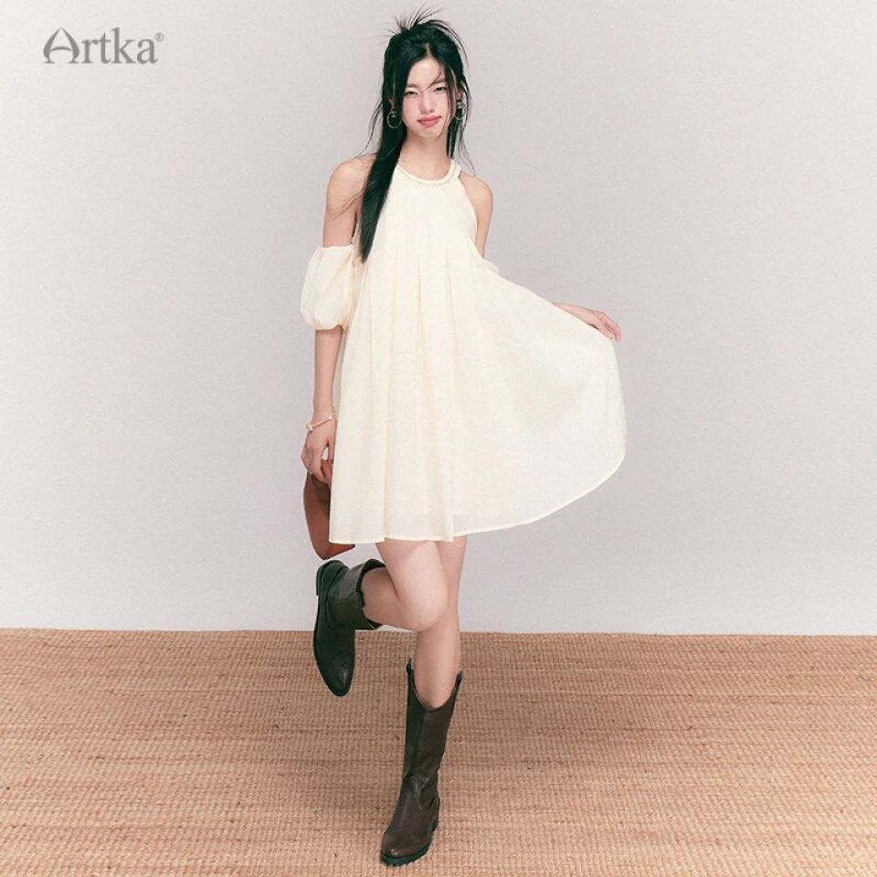From the Artka fashion line, an embodiment of grace, elegance, and simplicity emerges. The Women's Strapless O-Neck Halter Dress is a vision of delicate charm, designed for women who wish to radiate sophistication and sweet allure.