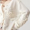 There's a certain allure to handcrafted garments that machine-made pieces simply can't emulate. The delicate crochet flower patterns accentuate this white cardigan, showcasing the meticulous craftsmanship that goes into each stitch. Not just an attire, but an art piece, celebrating the beauty of manual artistry.