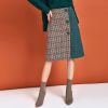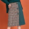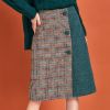 High Waist Half Plaid-Half Suede Woolen Skirt