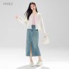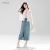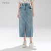 High Waist Split Denim Skirt With Pocket