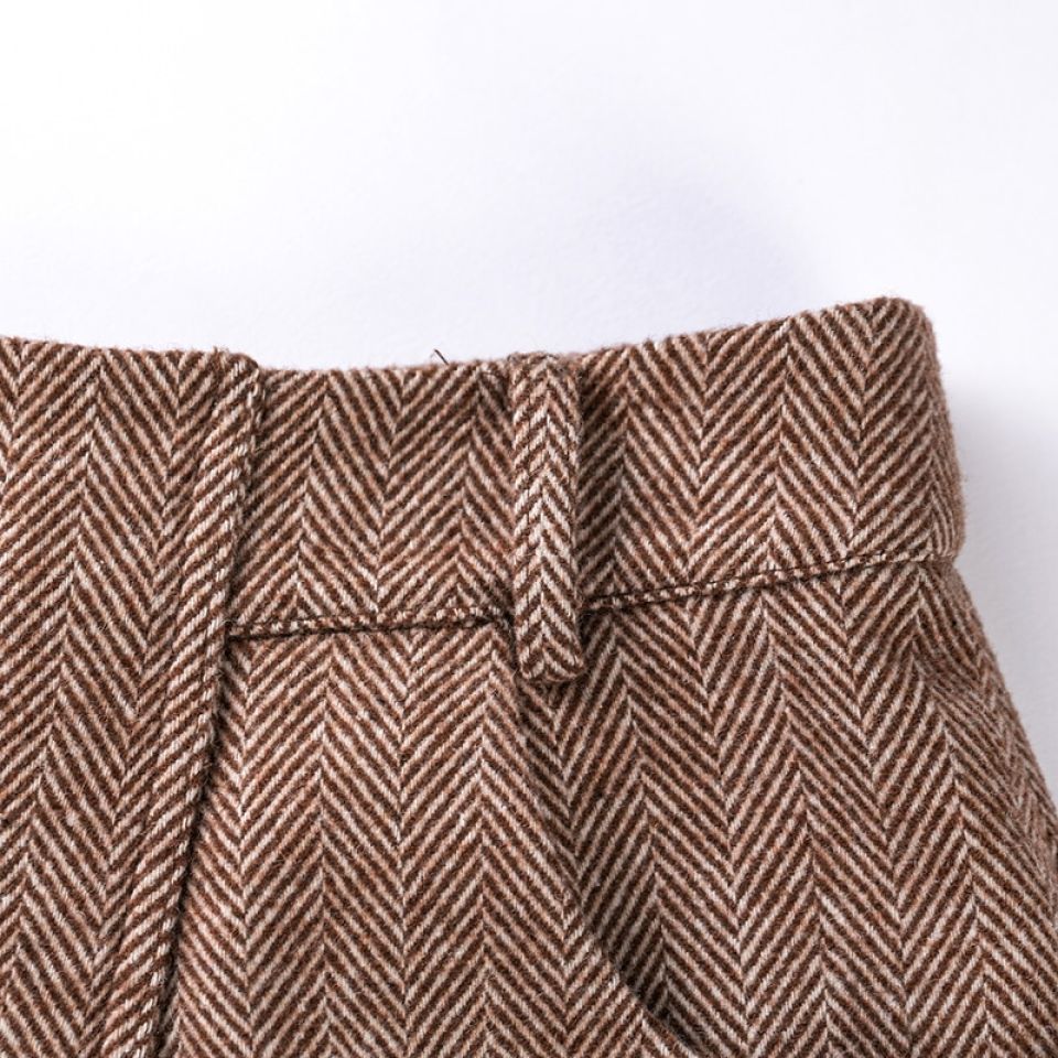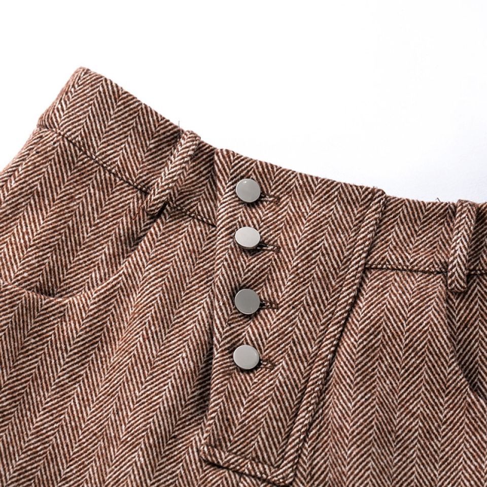 - Elegant Design: Classic tweed pattern with a modern high waist cut.