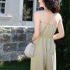 At the heart of this design lies its lace tank top detailing, bringing a touch of romance and delicacy to an otherwise modern piece. The lace provides a gentle contrast to the solid fabric, creating a sophisticated balance that enhances the jumpsuit’s overall appeal. This subtle embellishment makes it versatile enough to transition from daytime wear to evening gatherings with effortless grace.