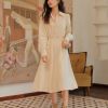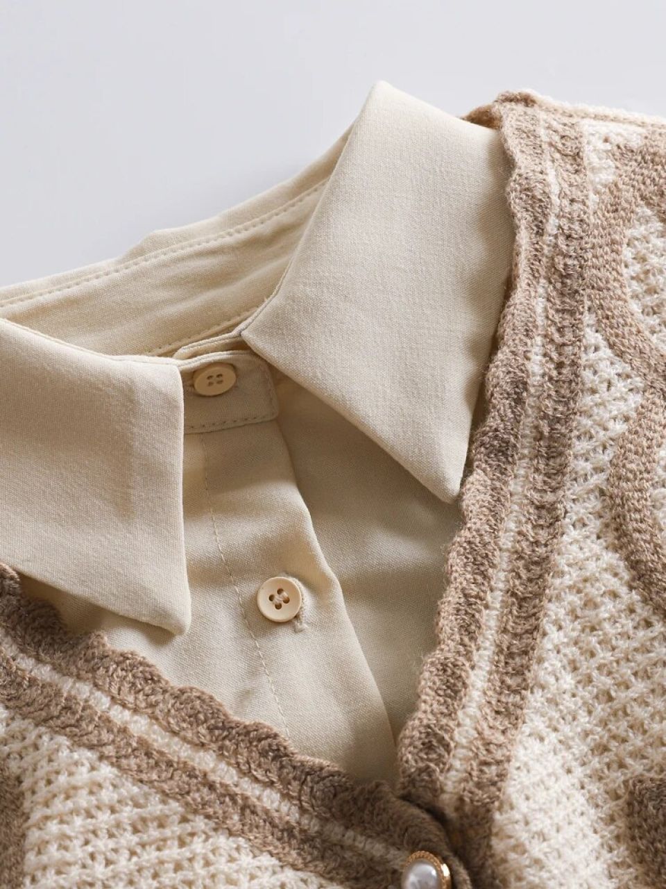 The highlight of this ensemble is the high-waist shirt dress, a timeless piece that exudes charm and grace. The A-line silhouette and mid-calf length create a flattering look for any body type. The turn-down collar adds a touch of sophistication, making it perfect for formal gatherings and casual outings.