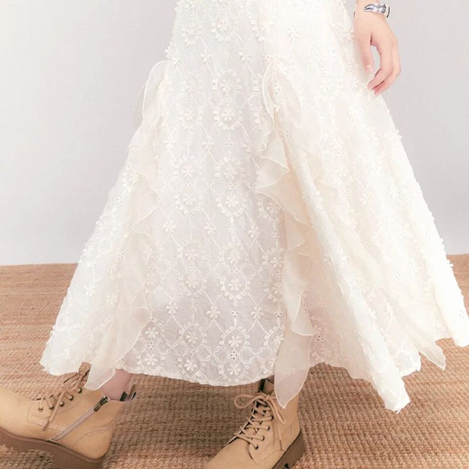 Lace Embroidered Ruffles Maxi Dress