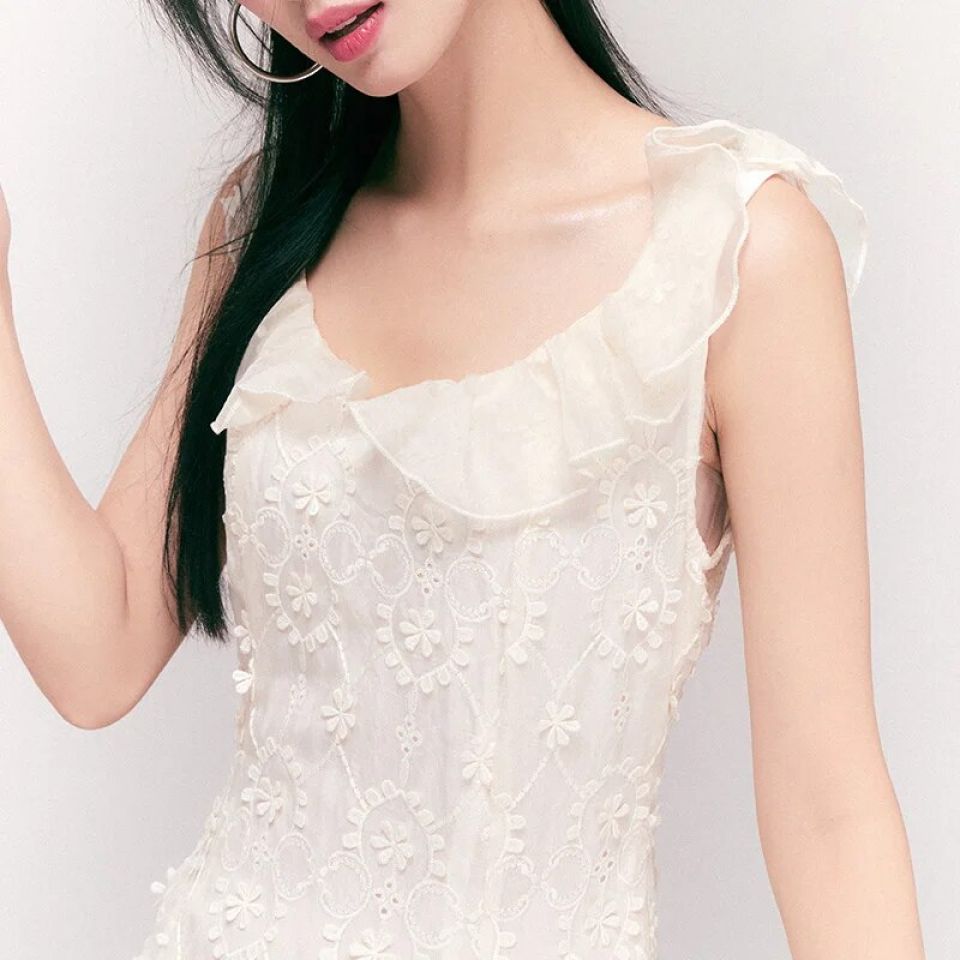 Every inch of this dress reveals the meticulous attention to detail that goes into its creation. The intricate lace embroidery, combined with the delicate ruffles on the V-neck, exudes an air of sophistication and luxury. Made from a premium cotton blend, it feels as divine as it looks, promising comfort without compromising style.