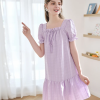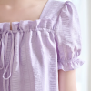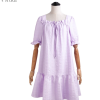 The straight silhouette paired with knee-length design draws inspiration from timeless fashion. Its ruffled accents and lantern sleeves add a delicate touch, making it more than just a dress—it’s a wearable piece of art. The square collar neckline frames the face beautifully, while the natural waistline ensures a relaxed yet tailored fit that flatters multiple body types.