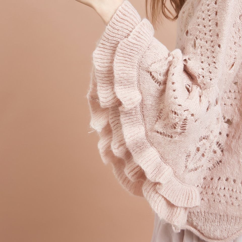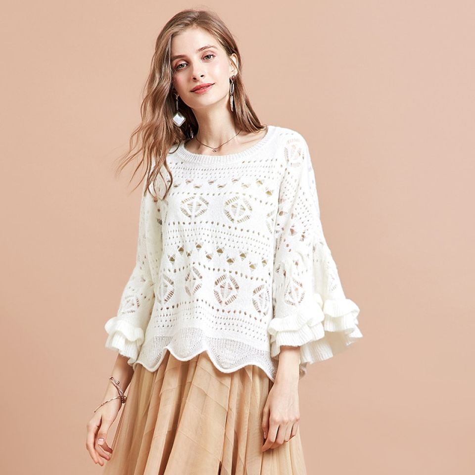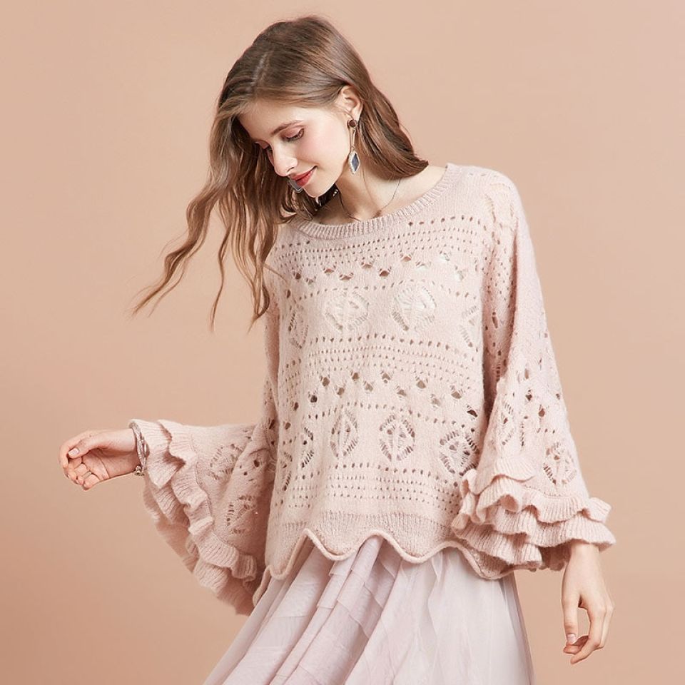 Be the first to review “Layered Bell Sleeve Hollowout Knitted Pullover” Cancel reply